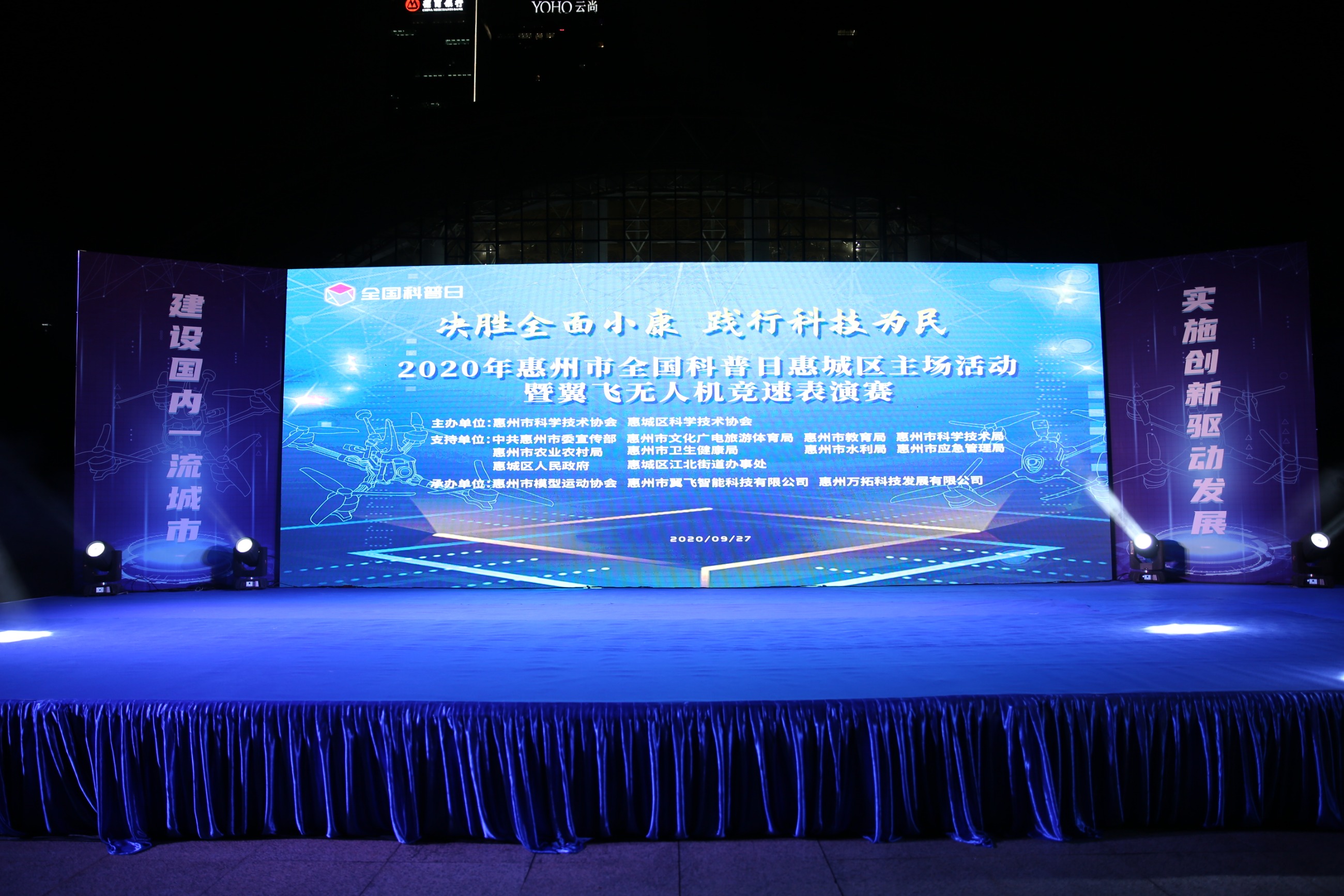 2020全国科普日,iFlight翼飞所举办的无人机竞速表演赛在惠州主会场拉开了帷幕!FPV无人机是无人机爱好者最受欢迎的一种飞行器,参与者控制配备摄像头的“无人机”(通常是小型无线电控制飞机或四翼飞机),同时佩戴头戴式显示器,显示无人机的实时摄像机反馈画面。