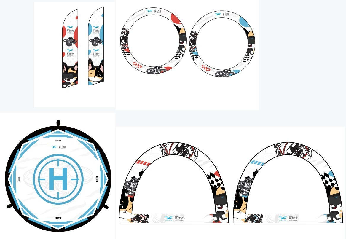 一套FPV训练赛道包含12个刀旗,3个空中圆门,3个半圆拱门,2个快拆训练垫。刀旗的高度是125cm,6个红色刀旗和6个蓝色刀旗空中圆门的内径是80cm,1个红色空中圆门和2个蓝色空中圆门半圆拱门的内径是120cm,1个红色空中圆门和2个蓝色空中圆门训练垫的规格是150cm
